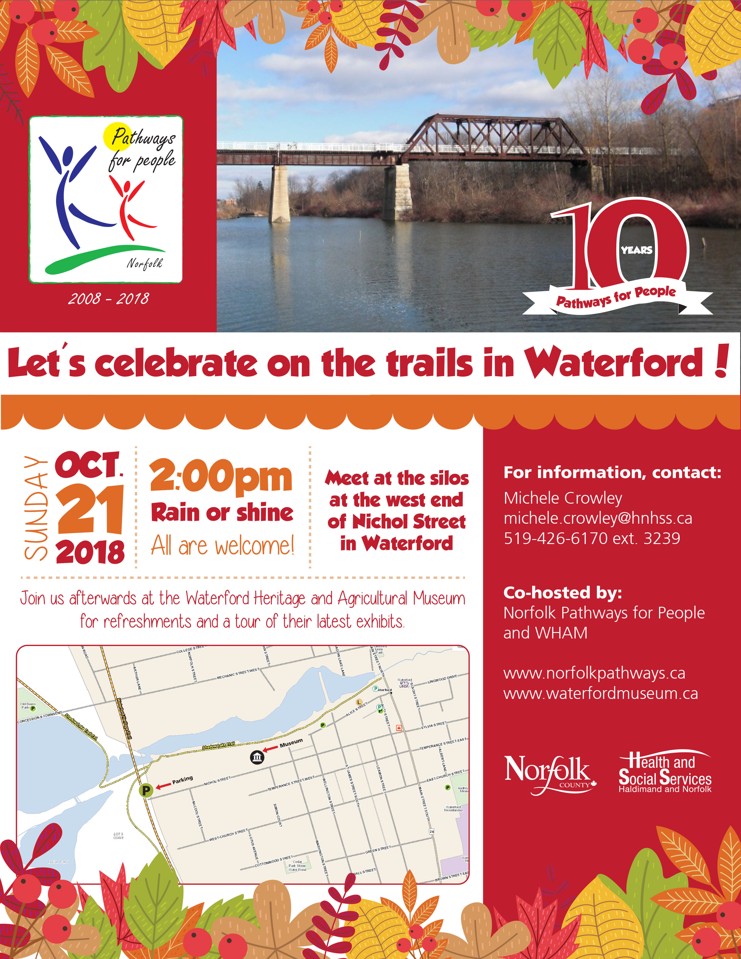 It has been another successful year for the Waterford Heritage Trail thanks to all our members and supporters. Vergeer Golf did an excellent job on the trail from the Waterford Ponds to the Brant Waterways Trail at Jenkins Road. We are very pleased with the volume of traffic and positive comments from those enjoying the trail.